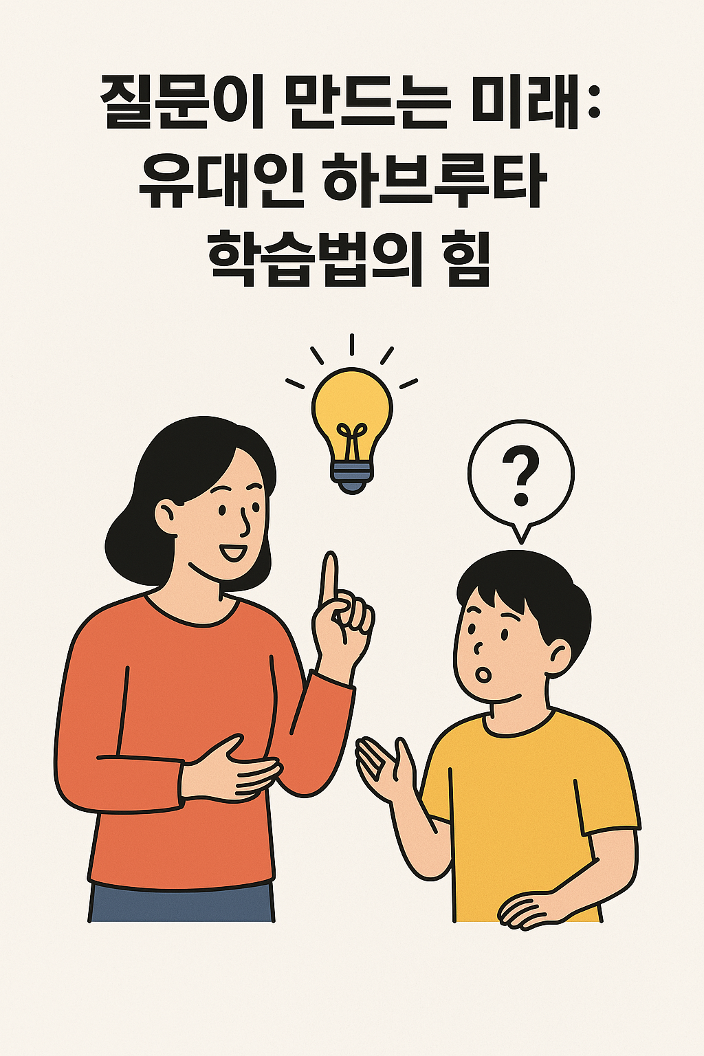 아이들에게 생각하는 힘을 길러주고 싶다면, 단순한 암기가 아닌 질문과 톳을 중심으로 한 교육 방식이 필요합니다. 유대인들의 수천 년간의 지혜가 담긴 하브루타(Havruta) 학습*은 4차 산업혁명 시대에 필수적인 창의성과 비판적 사고를 키우는 강력한 도구로 자리 잡고 있습니다.